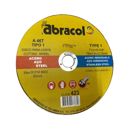 El disco de corte Abracol de 7" es una herramienta robusta y confiable diseñada para cortar una variedad de materiales con precisión y eficiencia. Fabricado con materiales de alta calidad, este disco ofrece un rendimiento excepcional y una larga vida útil en diversas aplicaciones industriales y de construcción.